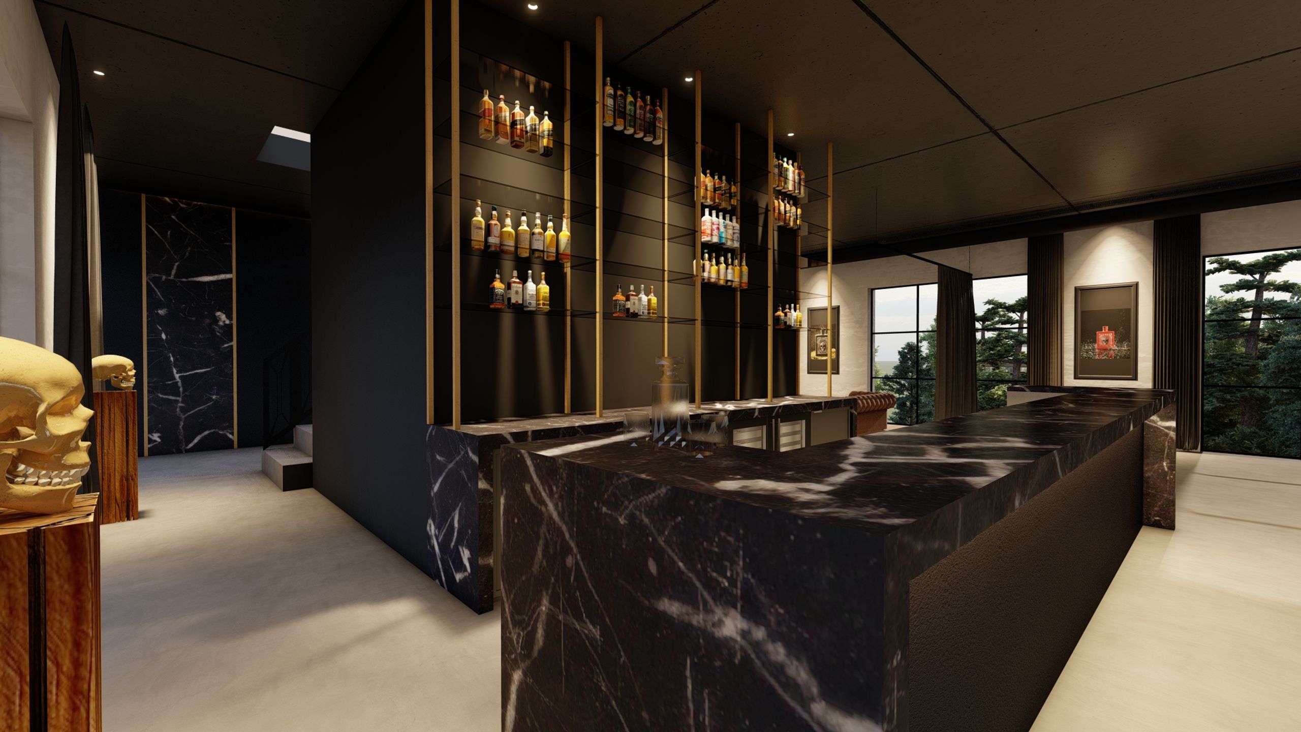 The bar station setup allows the venue to host events with two bartenders working in sync, run product development sessions in a lab-style setup, or serve as a highly adaptable stage for photographing Amuerte’s signature drinks. The design reflects the brand’s balance of elegance and edge, a piece of bar architecture that works as beautifully on camera as it does in service.