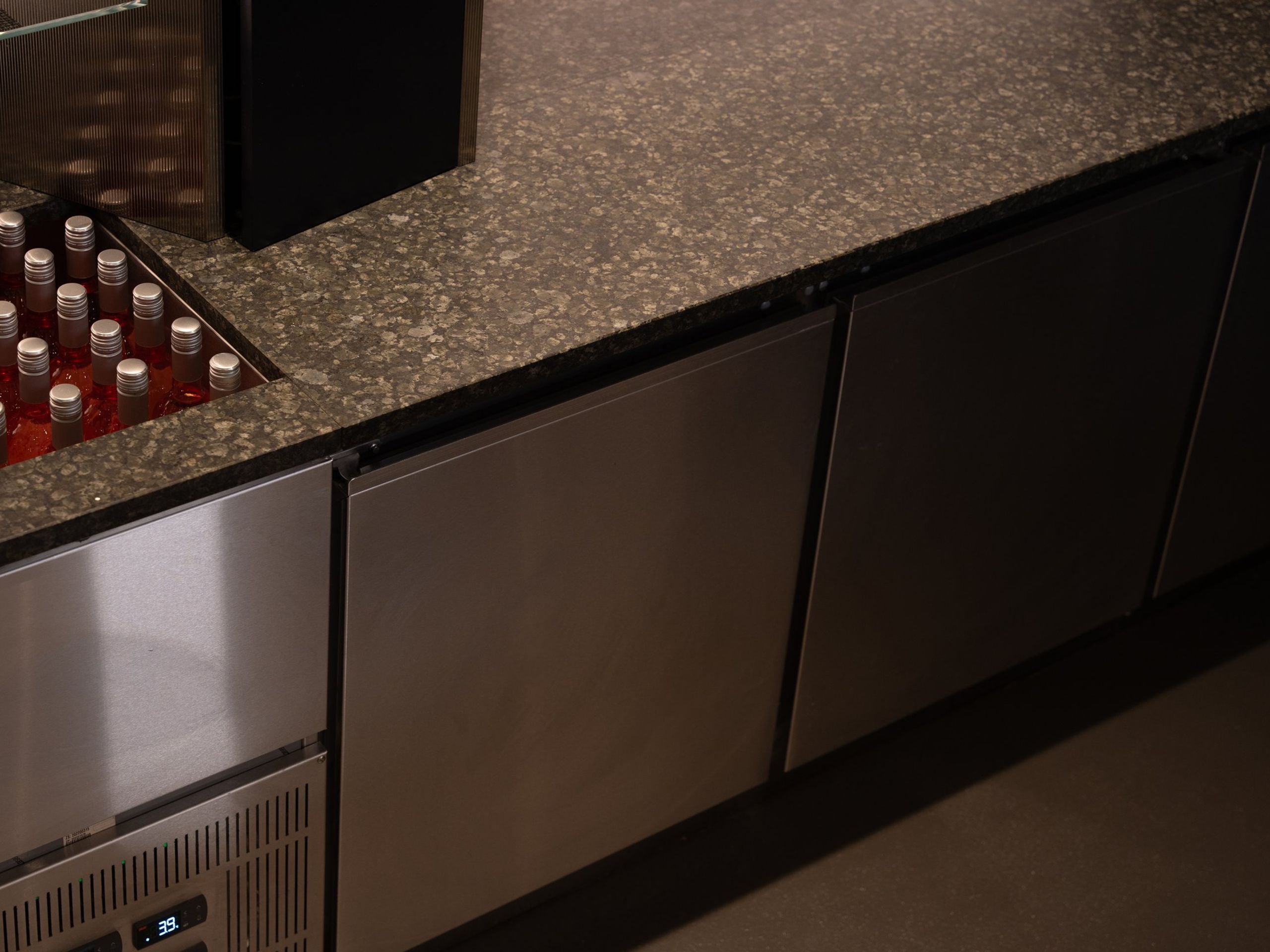 A Leon undercounter bar station designed for efficiency, speed, and high-volume service at Lysverker Scene, a venue blending old Hollywood glamour with European opera house elegance. This setup aligns with the bar systems across all Sommerro venues, ensuring a seamless bartender workflow.