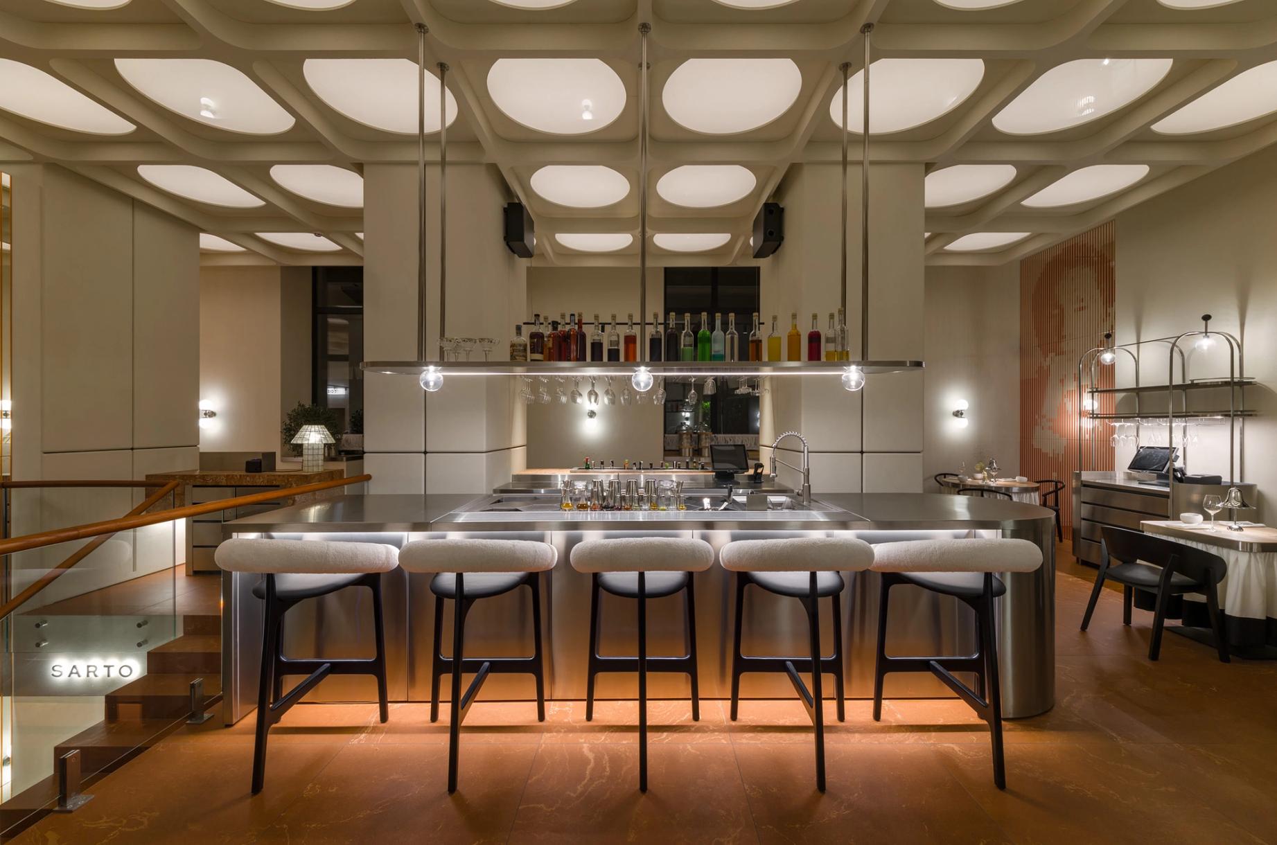 Sarto introduces a new “passage of taste” to central Kyiv. An upscale multi-space concept that brings Italian dining, patisserie, wine, and cocktails together in one address. The venue is organised into four distinct rooms that move from a contemporary Italian restaurant to a boutique-style patisserie, an enoteca, and a dedicated bar. The atmosphere is polished and design-forward, shaped by a modern identity that sits comfortably between gastronomy and fashion.