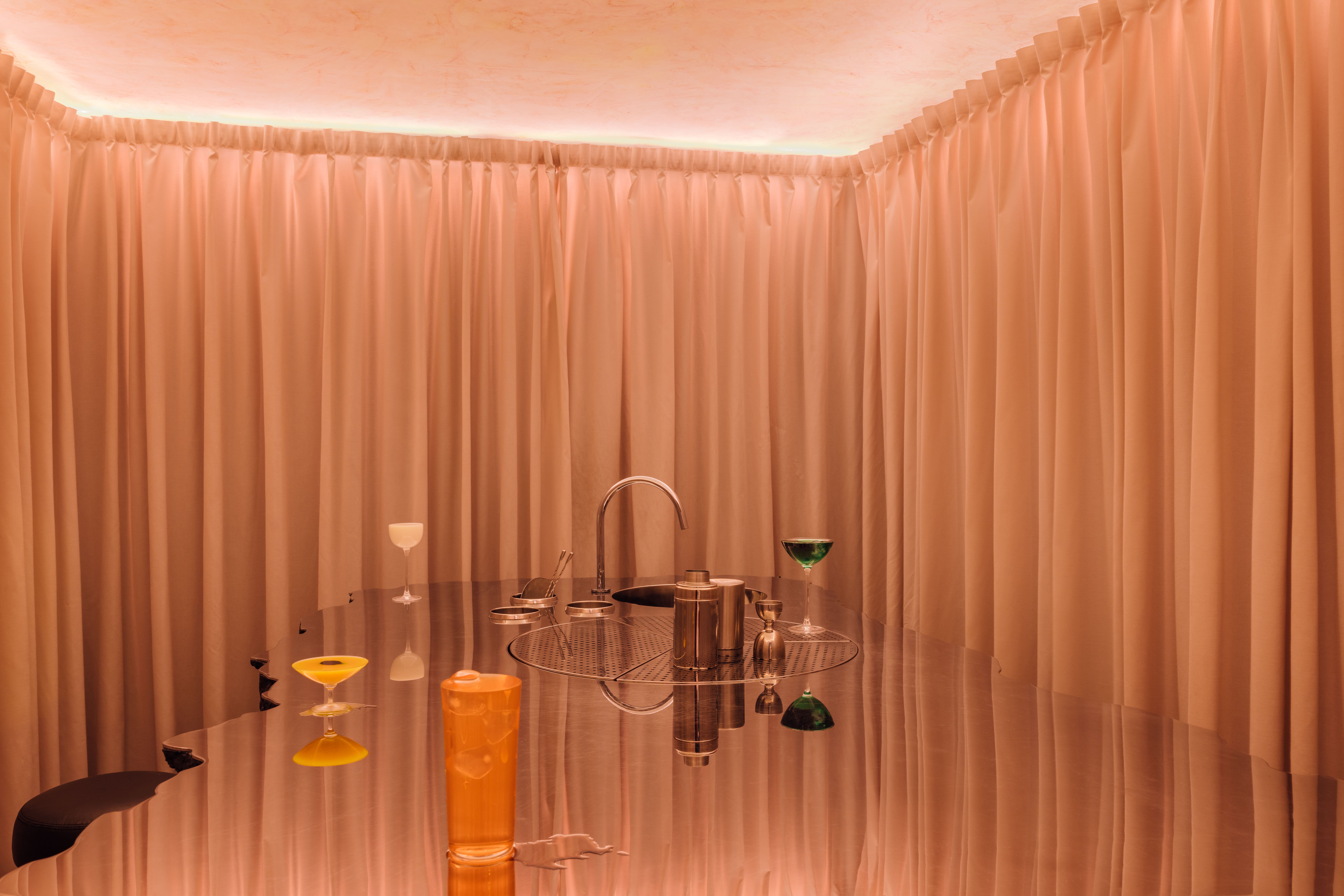 Uni is a 12sqm cocktail bar in Lisbon’s old town, designed as a single, focused experience. There’s one entrance, 9 seats, and one central element: a ceremonial bar station that invites guests to gather around and take part in an immersive moment of mixology.