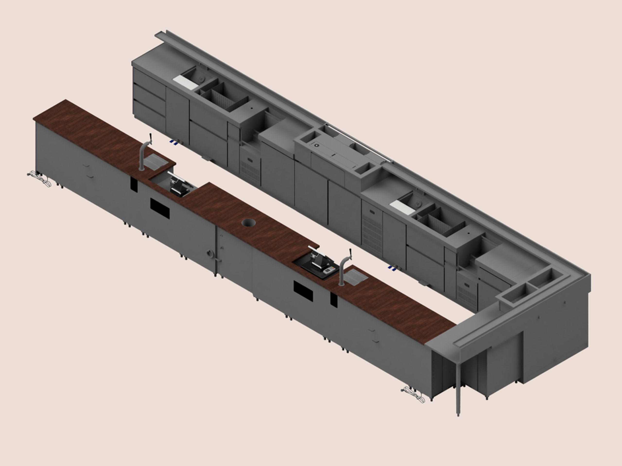 Behind the bar's sleek, minimalist appearance lies a world of technical sophistication. Despite its straightforward look, the bar integrates an advanced array of machinery, plumbing, and electrical systems. From the hidden beer system to the cleverly concealed compressors, every component is engineered to blend seamlessly with the design, optimizing both functionality and aesthetics.