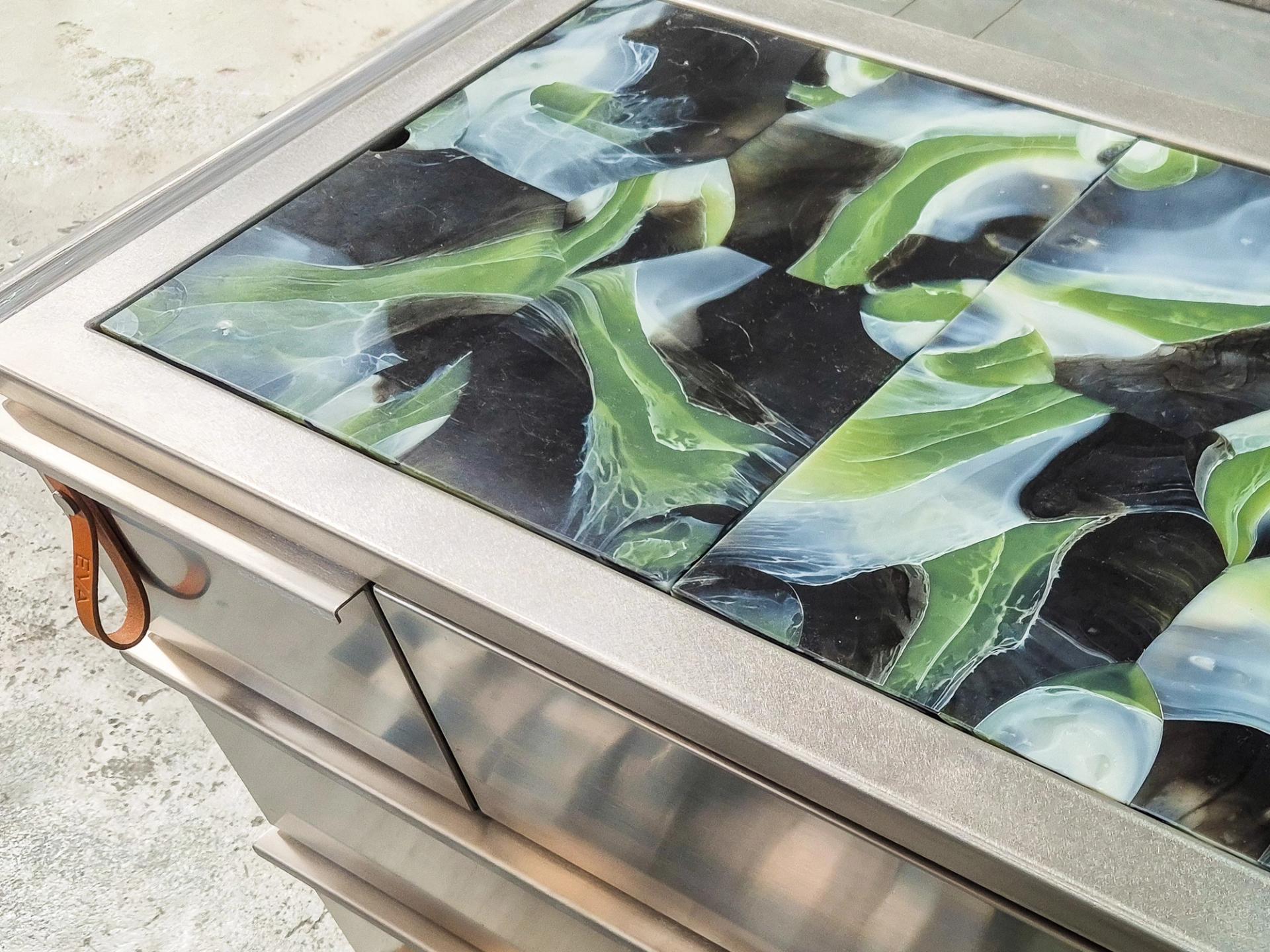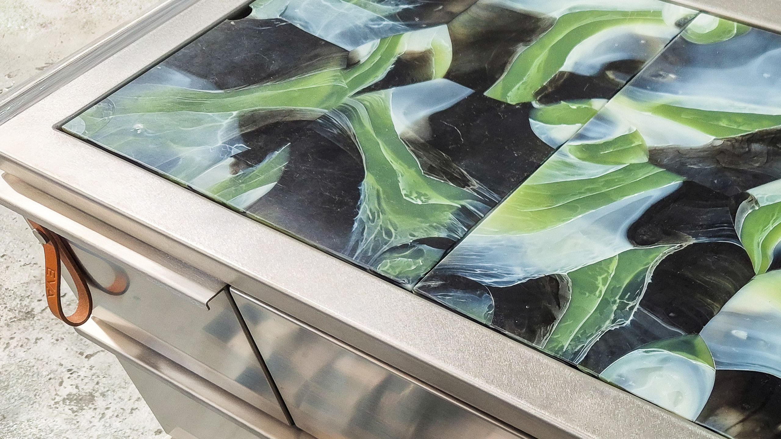 For SiSi, the result is a set of custom cover plates for the Eva trolley, in a fresh green tone that ties back to the original coasters. Set against the steel frame, they introduce a different material language, bringing contrast and depth to the setup while holding up to the pace and conditions of service.